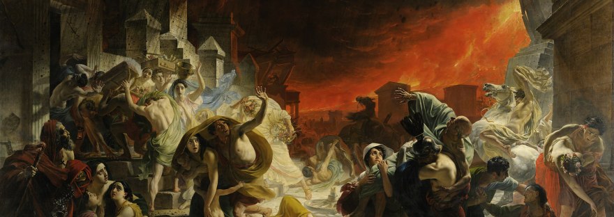 La très grande toile Le dernier jour de Pompéi (465,5 x 651 cm) est l’œuvre la plus célèbre du peintre russe Karl Brioullov. C’est en visitant le site de fouilles en 1827 que lui vient l’idée de peindre le tragique destin de cette petite ville et de ses habitants. Le prince Anatole Demidov, qu’il a rencontré à Naples, est alors prêt à acquérir l’œuvre. Brioulov commence donc à réaliser quelques esquisses. Le frère de Karl, Alexandre Brioullov, avait déjà visiter les ruines de Pompéi dans les années 1820, et y avait même réalisés des mesures et des croquis. Il n’a sans doute pas été étranger à l’envie de Karl d’également aller visiter cet endroit.