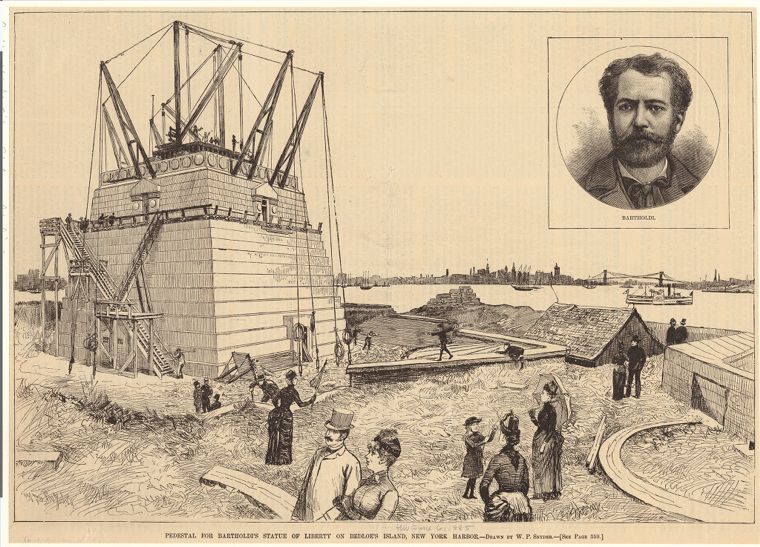 En 1871, Bartholdi se rend aux Etats-Unis pour trouver des soutiens à son projet, mais aussi trouver un lieu pour installer sa sculpture monumentale. Il repère alors Bedloe’s Island (future Liberty Island) à l’embouchure du fleuve Hudson qui abrite alors un fort militaire. Pour lui, c’est l’endroit idéal car tous les bateaux arrivant à New York passeront devant. L’île appartient au gouvernement et il obtient du Président Ulysses S. Grant la promesse que le site pourra accueillir la statue. Bartholdi rencontre également d’autres Américains influents intéressés par son projet mais le sculpteur préfère quand même attendre encore un peu avant de véritablement s’engager dans cette grande entreprise.