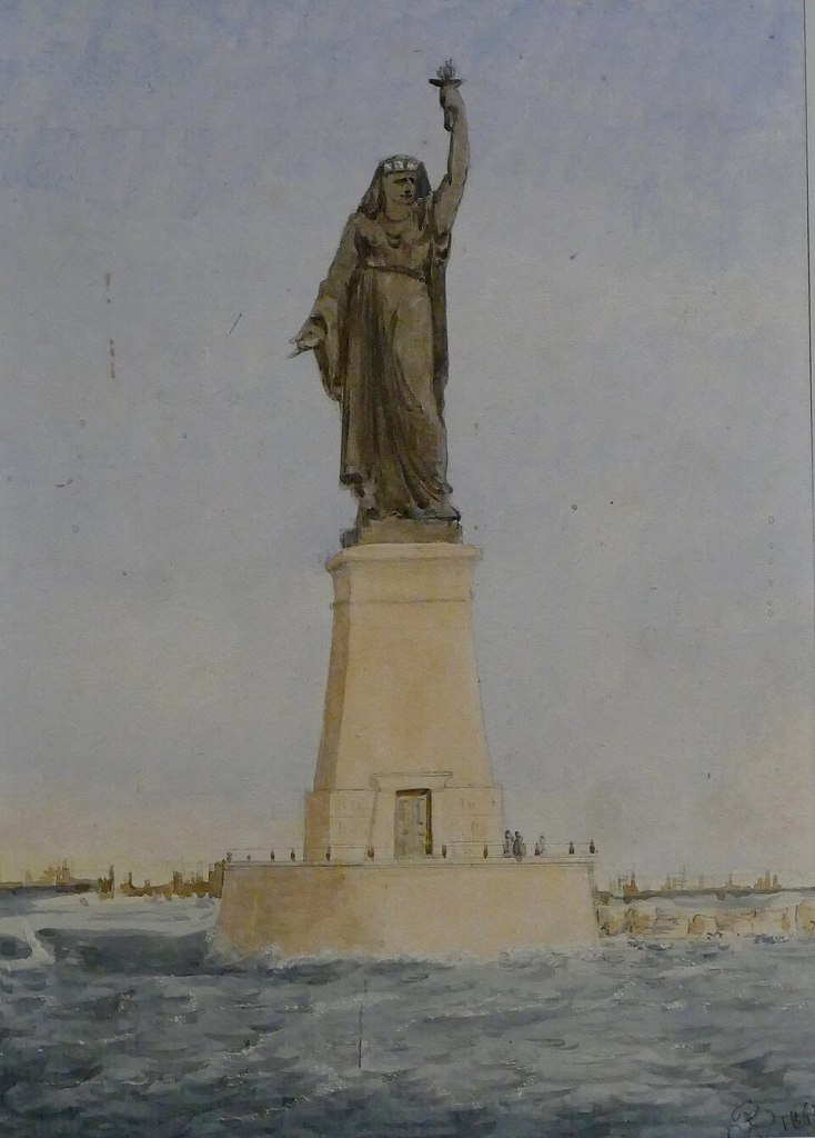 Auguste Bartholdi sculpte néanmoins une première ébauche en terre cuite en 1870. Ce premier modèle est aujourd’hui exposé au Musée Bartholdi à Colmar (ancienne maison de naissance de Bartholdi). En même temps qu’il travaille sur le concept de sa Statue de la Liberté (qu’on appelle aussi La Liberté éclairant le monde), il reçoit la commande du Lion de Belfort, une autre sculpture monumentale, rendant hommage à la résistance de cette ville alsacienne face au siège des Prussiens.